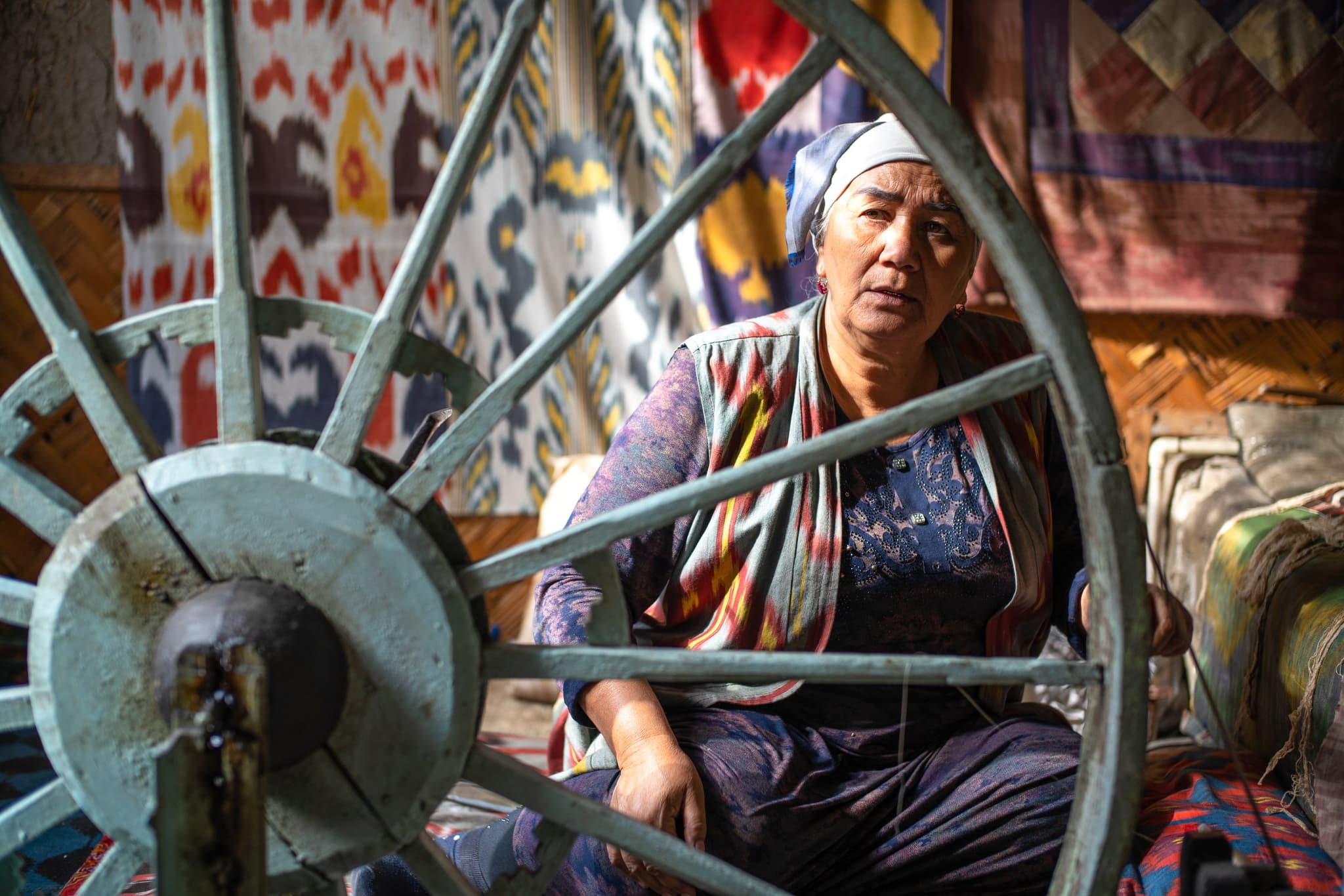 Just här, i Margilan, blir Sidenvägen konkret på ett sätt som annars lätt går förlorat. Så mycket i berättelsen om siden handlar om färdvägar, handel och stora historiska sammanhang. Men innan tygerna kunde byta ägare i Kashgar, Samarkand eller Bukhara måste någon ha dragit ut silkestråden, färgat garnet och satt sig vid vävstolen. Margilan påminner om att Sidenvägen inte bara bars upp av köpmän och härskare, utan också av hantverkare.